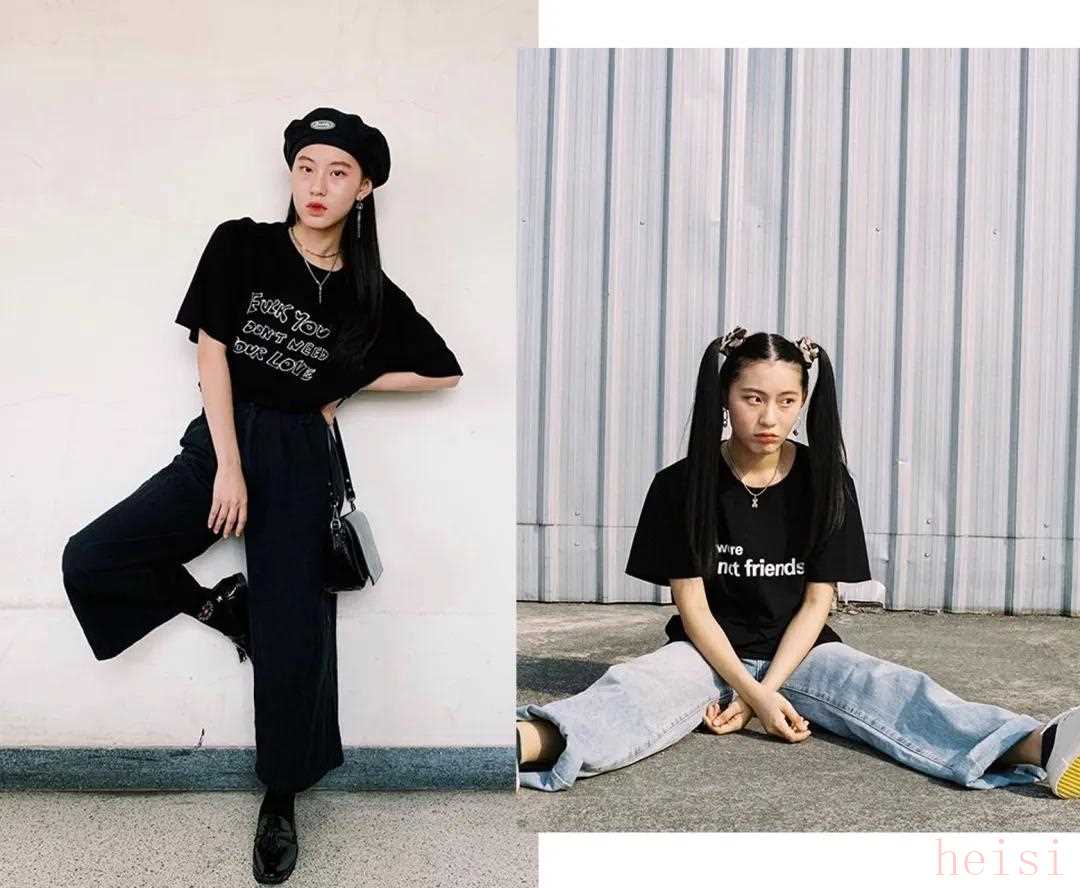 字母T恤超級百搭,和不同的褲子能拍出不同風(fēng)格的照片,與闊腿褲更是時髦。
