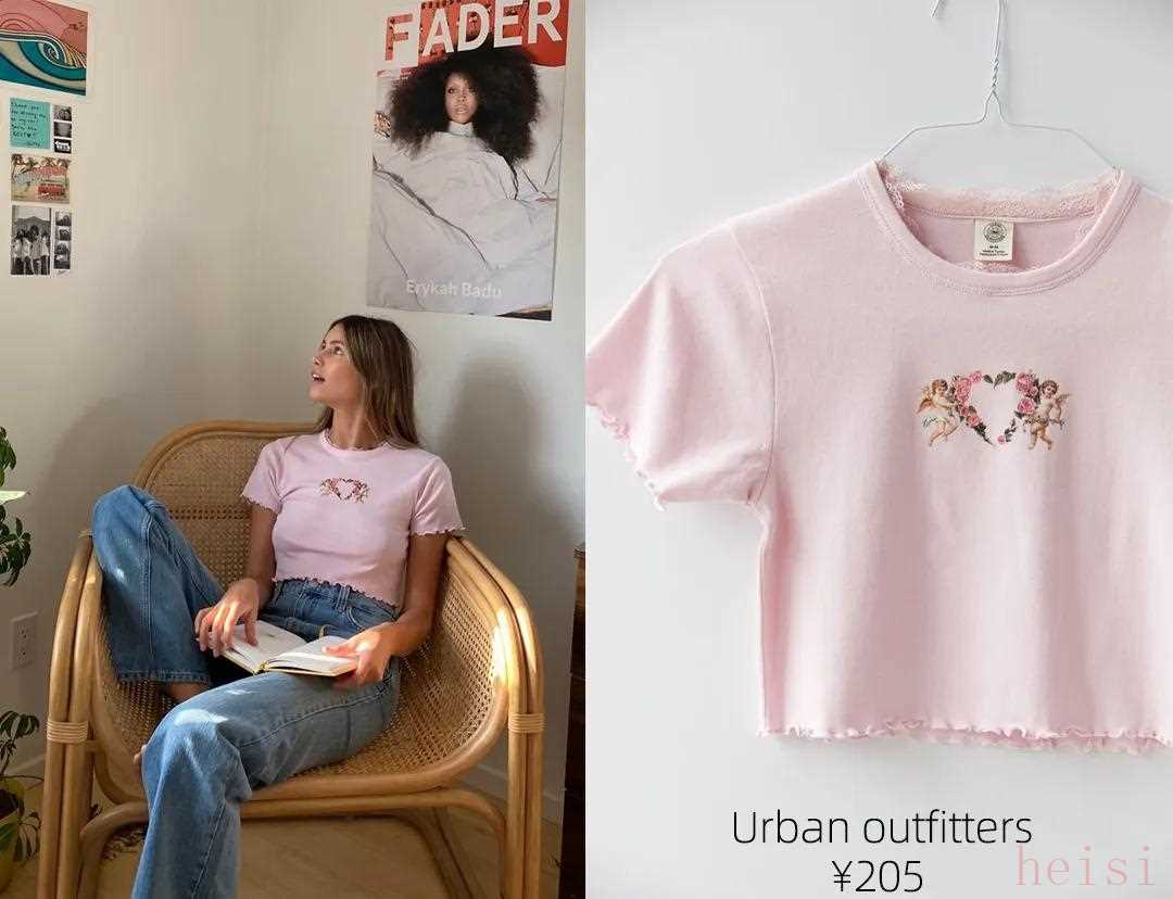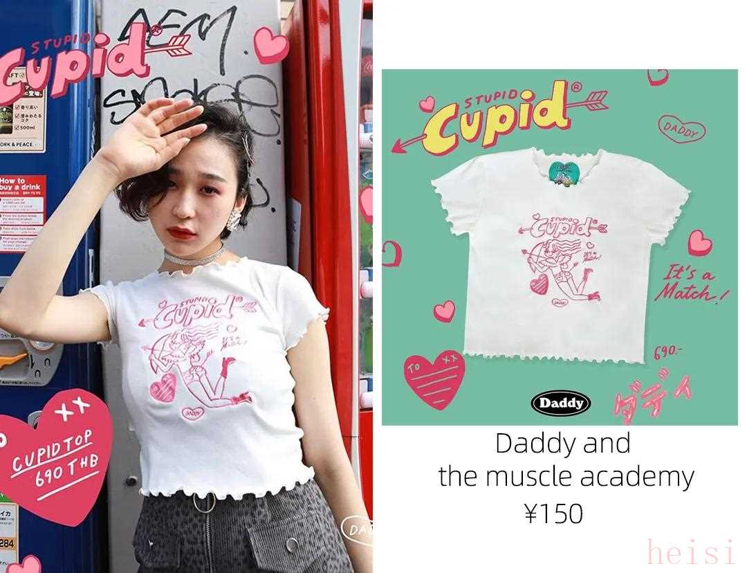 一個小天使在c位印在胸前的,配雙小白運動鞋,簡直了,就是校園里活潑漂亮的小女孩。