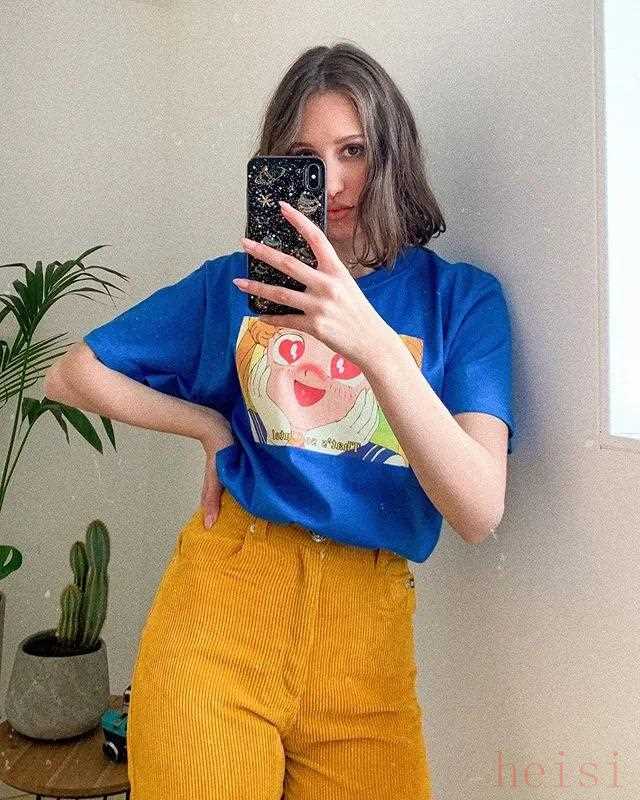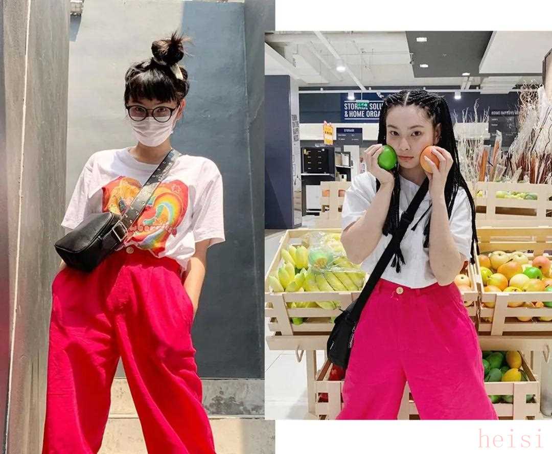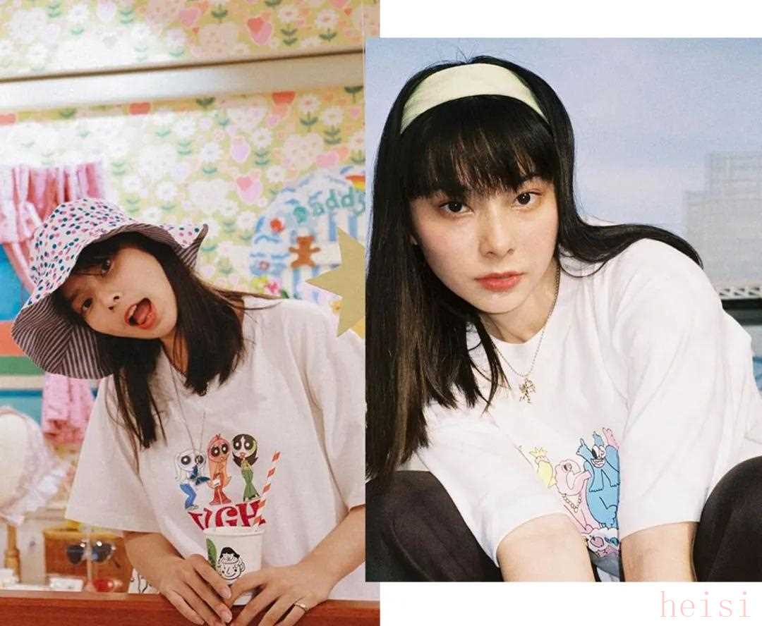 卡通印花T尤其夏天,適合與各種彩色搭配,黃色褲子、紅色褲子,飽和度高的都能往身上堆。