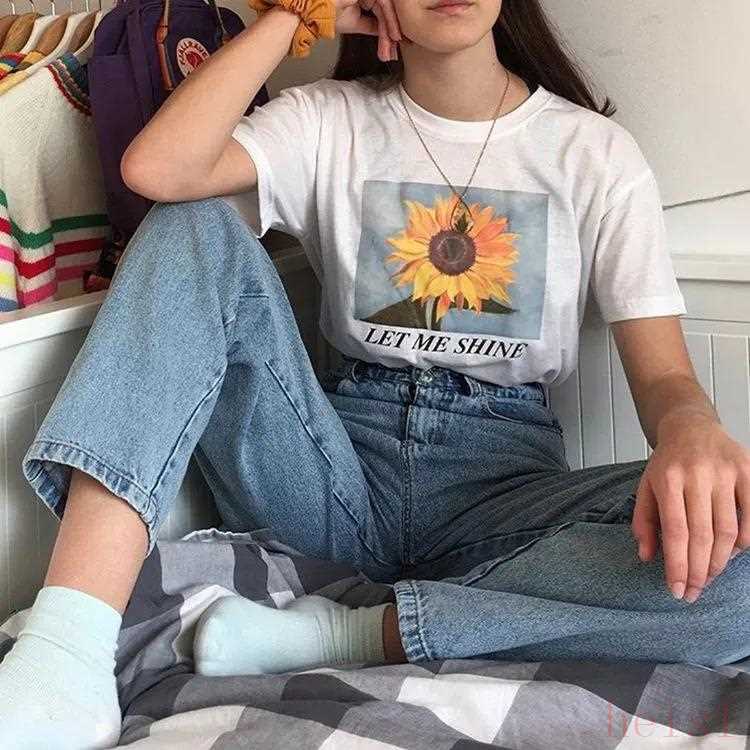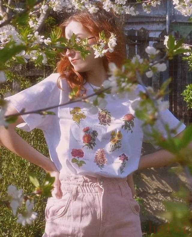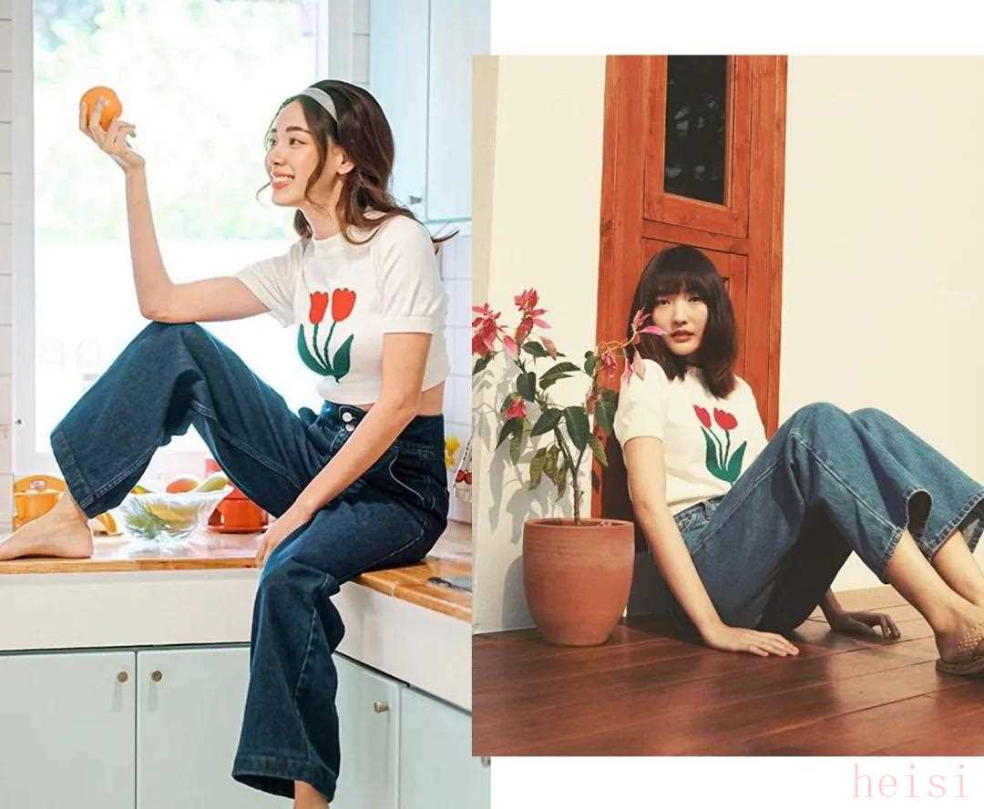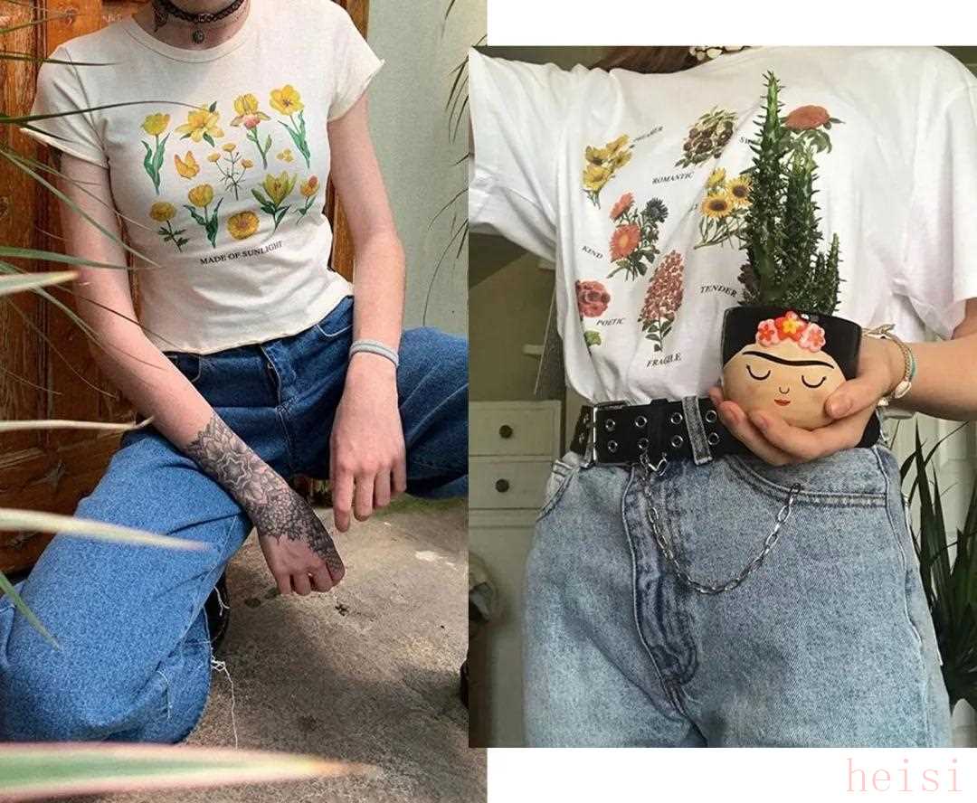 復(fù)古一些的80年代美式花朵T恤,直接配闊腿牛仔褲出門。