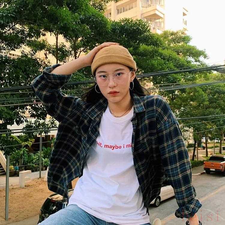 小小一串slogan很值得投資,除了黑白配色,紅色小字母也要入手!早晚微涼的時候披件格子襯衫。