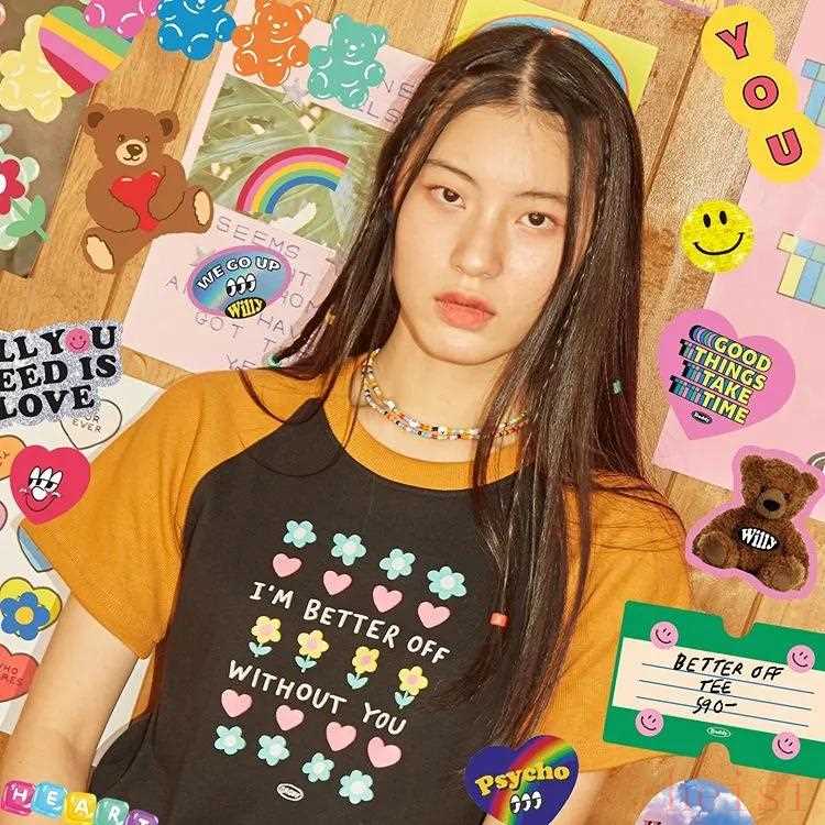 韓國品牌就很喜歡做一些前后都有印花的設(shè)計,前面是簡單的字母,后面就是大面積字母,就…很韓。