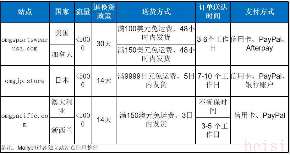 但是OMG比較特別的是,他們?cè)诓煌膰业貐^(qū)設(shè)置了獨(dú)立運(yùn)營的站點(diǎn),例如美國站是omgsportswearusa.com;日本站是omgjp.store;澳大利亞和新西蘭獨(dú)立站:omgpacific.com。