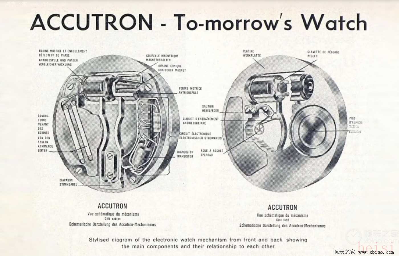 另一款以電池為動(dòng)力,向機(jī)械表發(fā)起挑戰(zhàn)的產(chǎn)品為寶路華ACCTRON音叉表。這也是一家創(chuàng)立于美國(guó)的制表公司,后于1912年將廠房搬遷至瑞士。1960年寶路華研制出了第一款真正意義上的“電子表”,它顛覆了數(shù)百年來(lái)鐘表機(jī)芯使用的擒縱結(jié)構(gòu),使品牌一戰(zhàn)成名。時(shí)至今日,寶路華仍以“音叉”作為標(biāo)志。