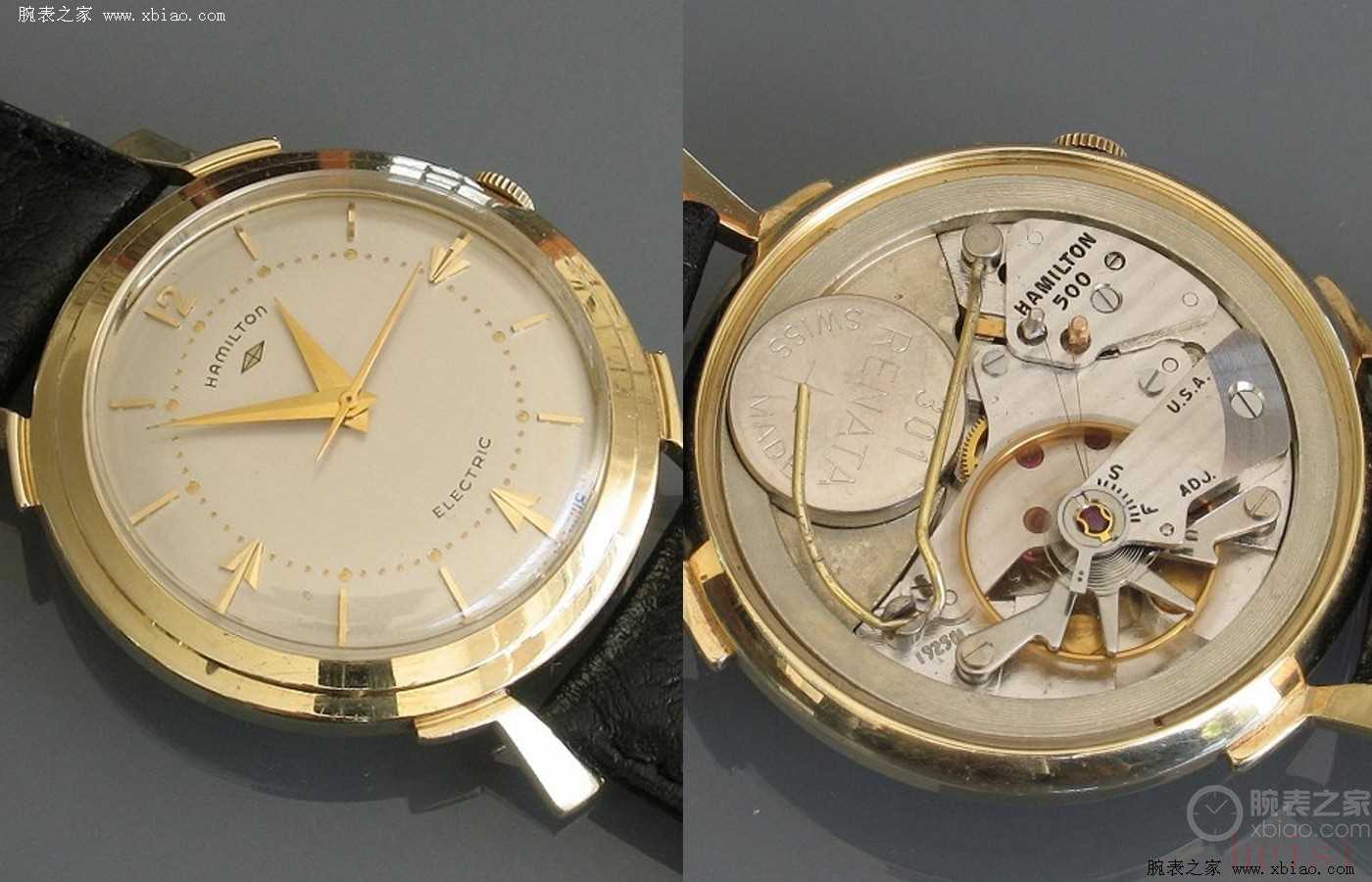 隨著二戰(zhàn)后世界格局發(fā)生變化,來(lái)自美國(guó)的制表品牌,率先向歐洲(瑞士)傳統(tǒng)工業(yè)發(fā)起挑戰(zhàn)。1946年,時(shí)任漢米爾頓產(chǎn)品研發(fā)部負(fù)責(zé)人的喬治·盧基(George Luckey)主導(dǎo)了首款電能機(jī)芯的研發(fā)工作,這項(xiàng)計(jì)劃被稱為“Project X”。其核心思路為,將電池正負(fù)極通過(guò)金屬絲與機(jī)芯相連,依靠線圈將電能轉(zhuǎn)化為動(dòng)能,推動(dòng)擺輪運(yùn)轉(zhuǎn)。經(jīng)過(guò)長(zhǎng)達(dá)十年的不懈努力,這一方案最終從構(gòu)想變?yōu)楝F(xiàn)實(shí)。在1957年1月紐約舉行的新聞發(fā)布會(huì)上,漢米爾頓向來(lái)自不同國(guó)家的120多名記者展示了首款電能機(jī)芯的原型表。