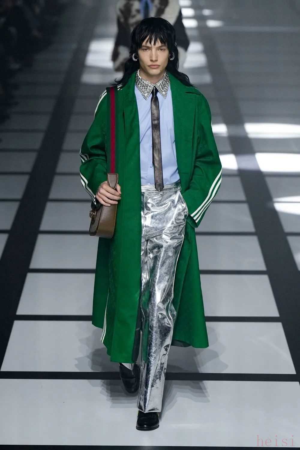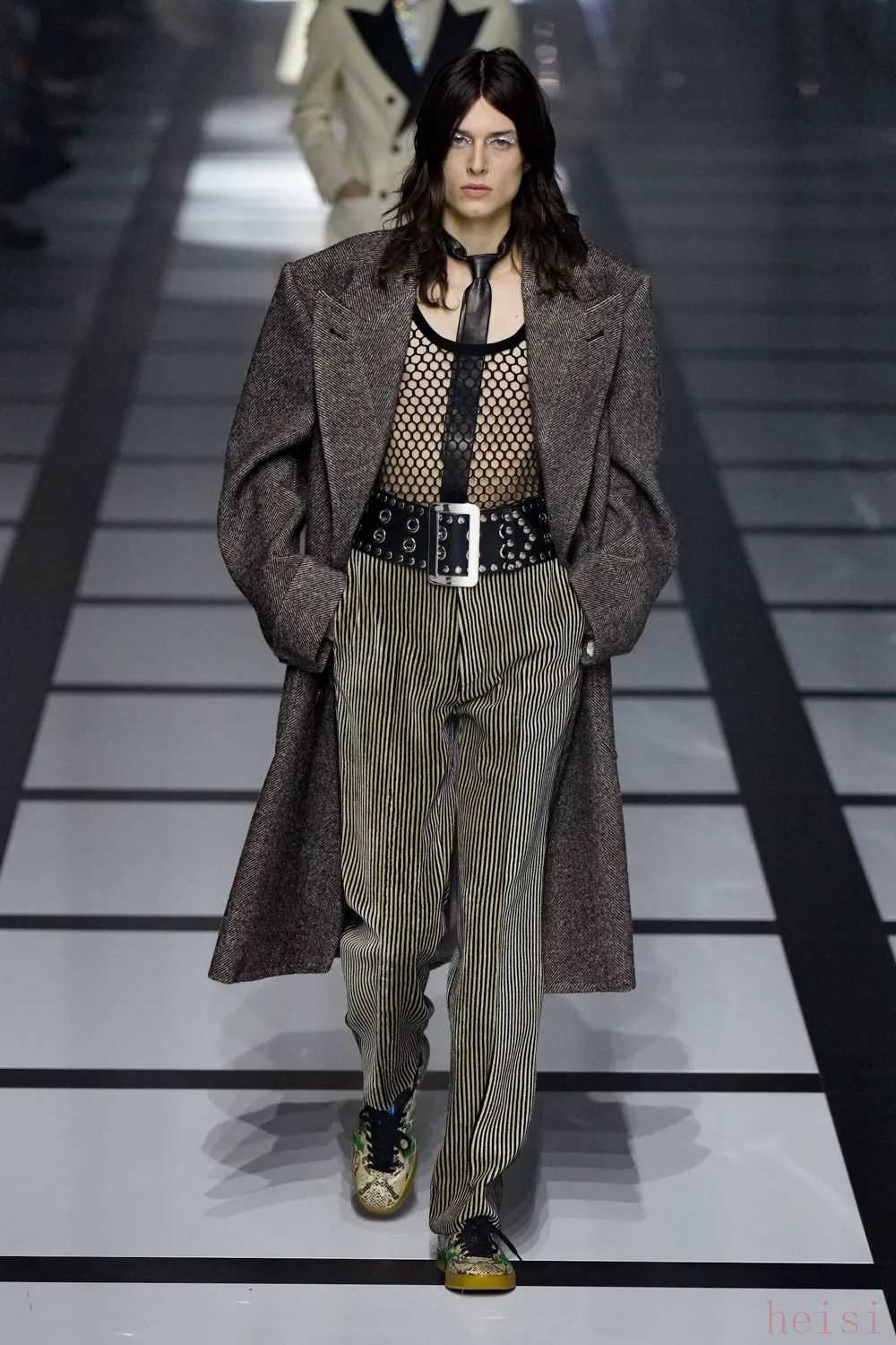 GUCCI的百年積淀,在這座“光學(xué)實驗室”里充滿了變奏的神奇和滲透的精致。風(fēng)衣與西裝的不對稱設(shè)計時髦復(fù)古,細(xì)致的翻領(lǐng)設(shè)計將米開理對浪漫細(xì)節(jié)的把控體現(xiàn)得淋漓盡致。