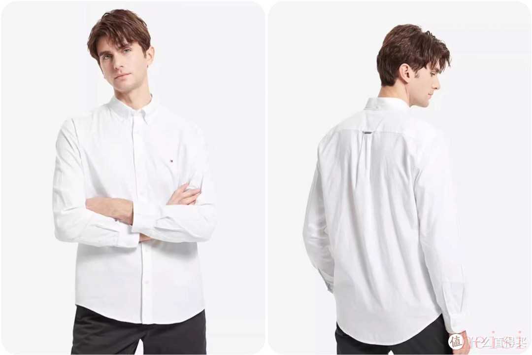 Tommy分為修身款和合身款,我后來(lái)給他買(mǎi)過(guò)兩件,牛津紡面料,胸口的刺繡logo,很小不扎眼,不顯山不漏水,領(lǐng)子兩側(cè)各有一個(gè)小小的紐扣,穿起來(lái)很板正,但是對(duì)于胖人來(lái)說(shuō),領(lǐng)口略顯窄小。