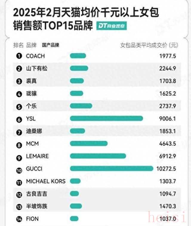 2025年天貓千元包榜單都變天了,TOP15里7個(gè)是國(guó)產(chǎn)的,山下有松這種牌子甚至壓了Gucci一頭。