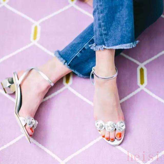 追求個(gè)性的可以看看紐約品牌Frances Valentine,主打?qū)毷懈蠲娴男?,矮矮的很別致。這款由寶石組成的一字帶銀色涼鞋就很特別。海淘網(wǎng)參考價(jià):3418元。▼