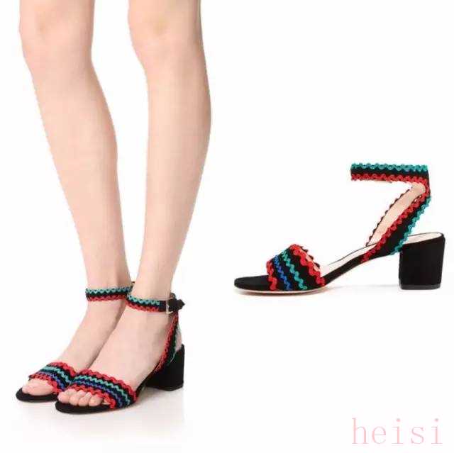 Kate Spade這款是在黑色一字帶粗跟鞋的基礎(chǔ)上加了幾種顏色不同的波浪紋,更活潑了。官網(wǎng)參考價(jià):1727元。▼