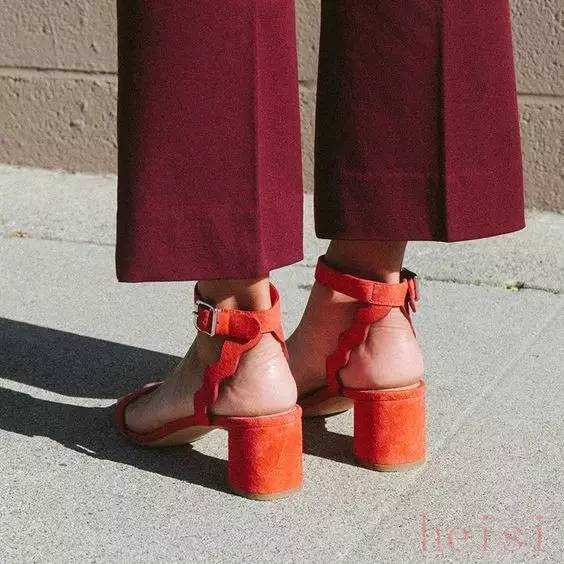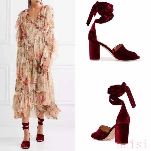 以綁帶出名的Sam Edelmen推出了紅色絲絨的魚嘴涼鞋。寬面魚嘴和綁帶相結(jié)合,剛好露出腳背和腳踝的那部分,有瘦腿的效果呢。這款跟比較高,官網(wǎng)參考價(jià):829元。▼
