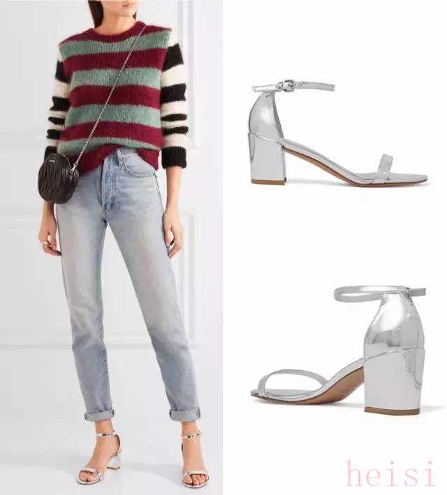 以一字帶高跟鞋出名的Stuart Weitzman推出了銀色的粗跟款,相對(duì)來說比較好穿。官網(wǎng)參考價(jià):2750元。▼