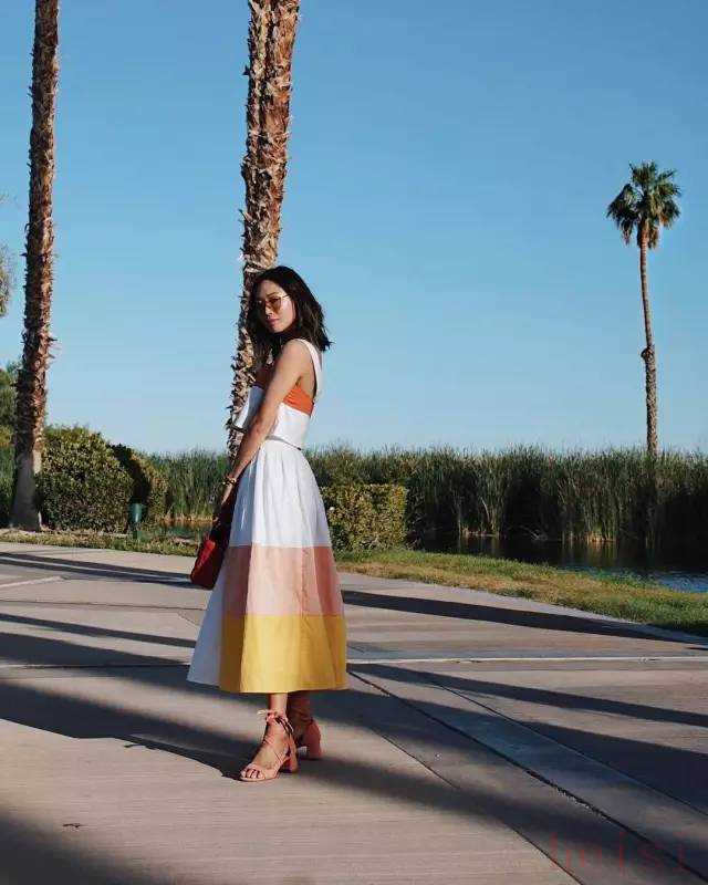 他家還有這種條紋設(shè)計(jì)的一片式?jīng)鲂偌由吓W胁嫉牟馁|(zhì),有種小清新的復(fù)古感。官網(wǎng)參考價(jià):909元。▼
