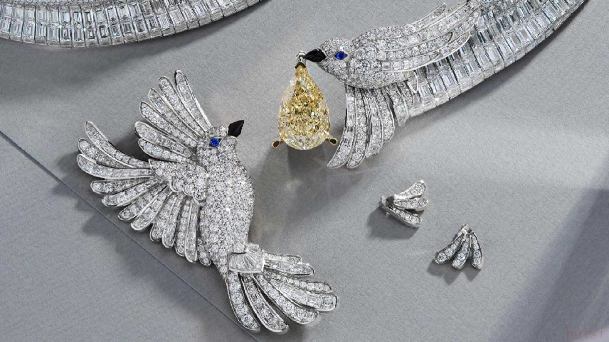 “石上鳥(niǎo)”是蒂芙尼(Tiffany & Co.)這幾年大力推廣的品牌經(jīng)典高級(jí)珠寶設(shè)計(jì)和品牌文化IP?!笆哮B(niǎo)”由蒂芙尼傳奇珠寶設(shè)計(jì)師讓·史隆伯杰(Jean Schlumberger)打造,首個(gè)作品誕生于1965 年,是以黃色鳳頭鸚鵡作為靈感打造的一枚“石上鳥(niǎo)”胸針,黃鉆、白鉆及未經(jīng)雕琢的青金石鑲嵌其上。