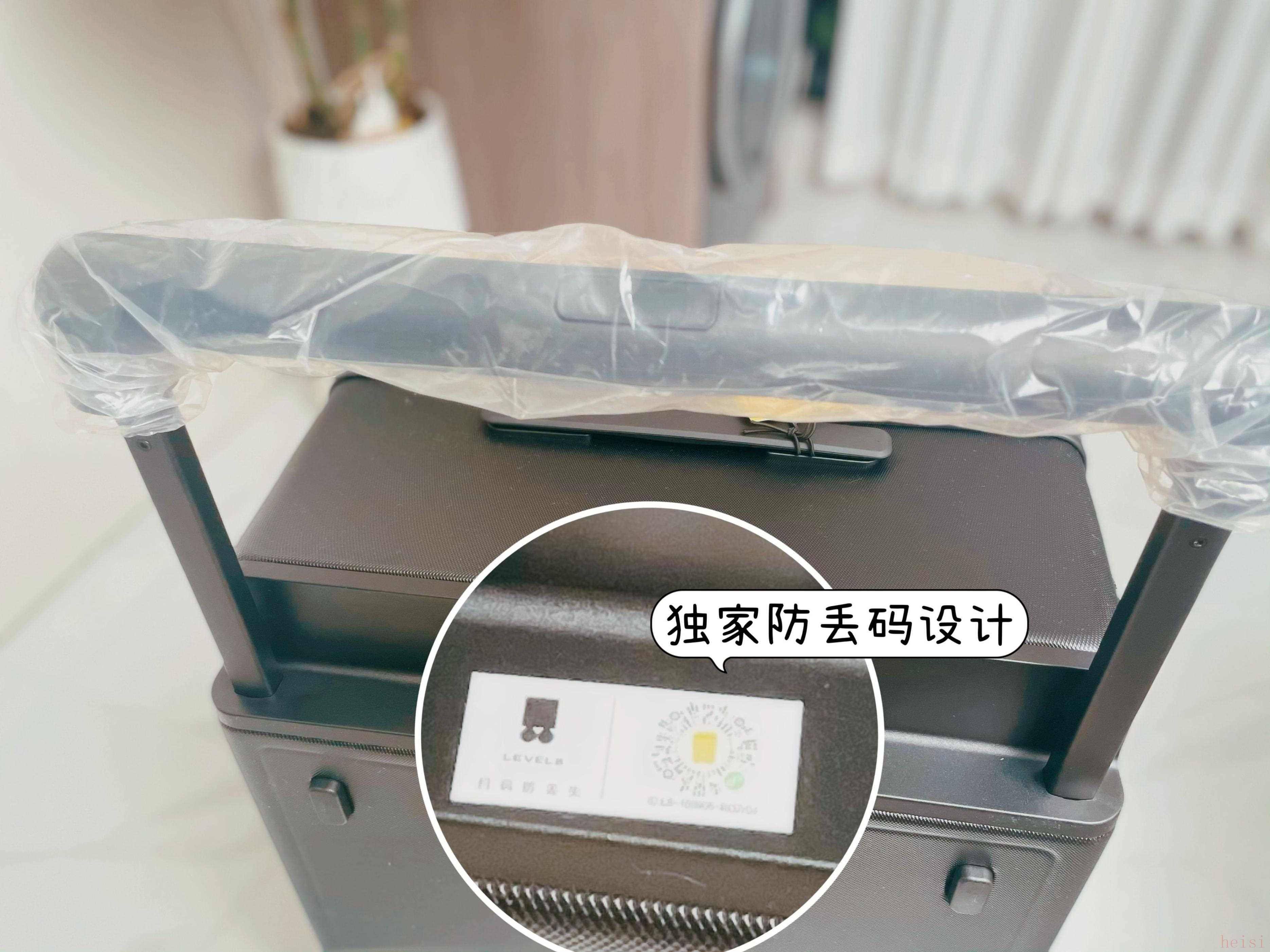 ④ 獨(dú)家防丟碼設(shè)計(jì),在行李箱的拉桿下方,每個(gè)箱子都有自己專屬的防丟碼標(biāo)簽,如果不小心丟了,可以在小程序登記,方便找回。