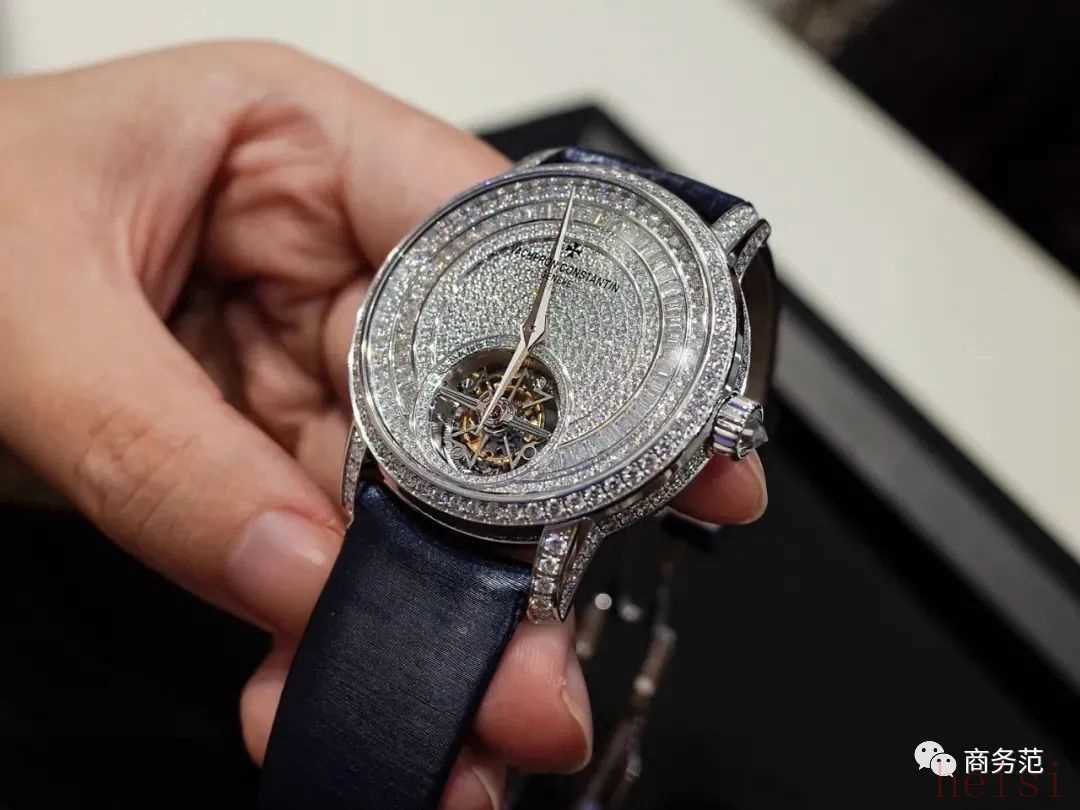 經(jīng)典的傳襲系列,第一次把陀飛輪功能用在女表上,白金表殼密鑲鉆石,6點鐘位置的陀飛輪盡顯機械美感。