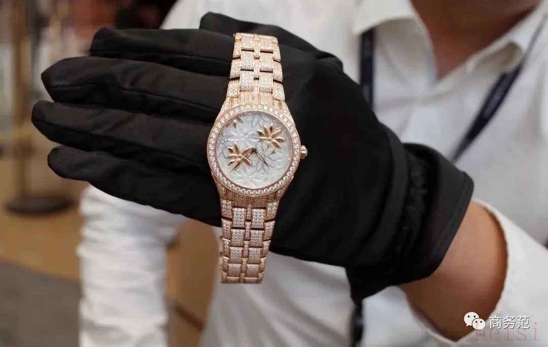 這款Tonda Reine de Mai腕表,也讓范主印象深刻。盤面綻放著形態(tài)各異的五月花,一共采用了23種不同的鑲飾工藝元素,珍珠貝母和玫瑰金、白金材質(zhì)相互融合,每朵花都經(jīng)過高級工匠的拋光、雕琢和手工噴砂處理,花瓣上還鑲嵌有117顆鉆石,表圈和表鏈也鑲滿鉆石,碰撞出細膩精巧的效果。