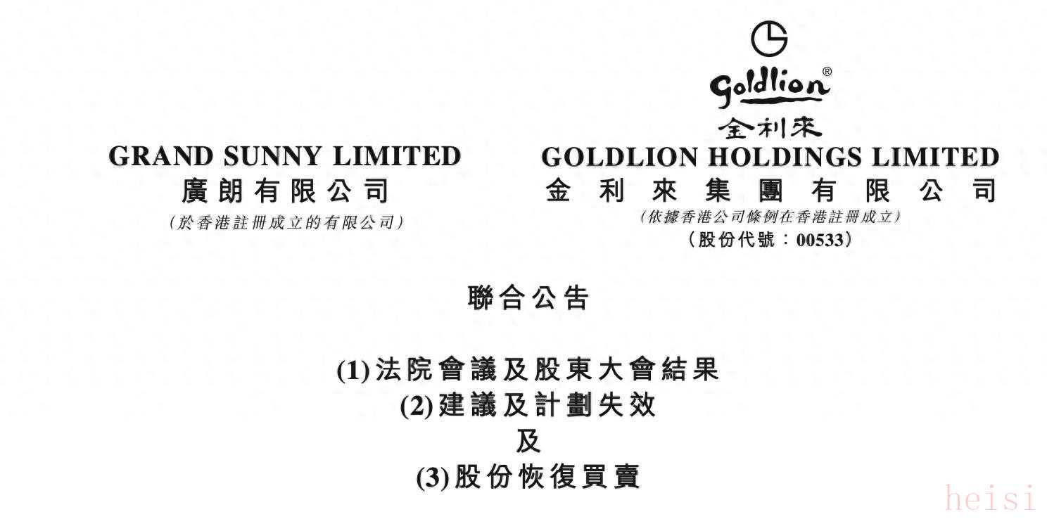 然而,正當業(yè)界認為金利來退市已是“板上釘釘”之際,卻突然發(fā)生“反轉(zhuǎn)”。上周五,金利來舉行法院會議及股東大會,并于下午一時起短暫停牌。
