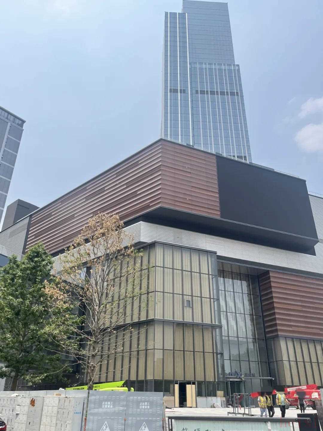 從現(xiàn)場來看,項目的外立面完成度非常高,萬象城的LOGO已經(jīng)掛上,連側(cè)門的萬象城logo也已經(jīng)掛上了;靠近東風(fēng)南路這一側(cè)的廣場的綠植,也已經(jīng)栽種完成。