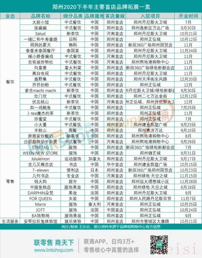 從首店量級(jí)來看,2020年下半年共引進(jìn)36家首店中,27家為鄭州首店,河南首店7家,還有言幾又概念店華中首店和以及JOTT全國(guó)首店。