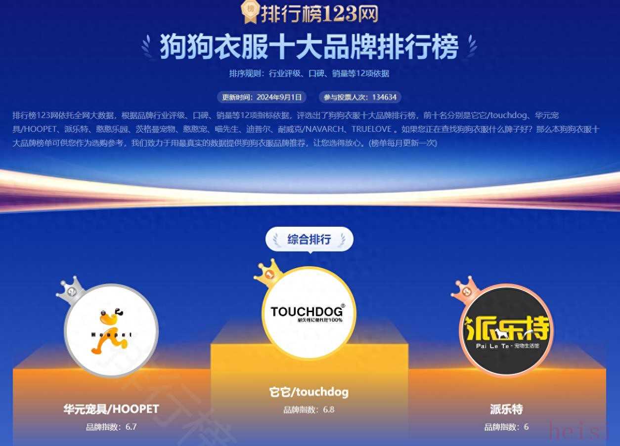 以下是根據(jù)2024年綜合排名的狗狗衣服品牌排行榜,排名不分先后: