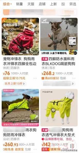 在電商平臺上,寵物戶外服飾更是應有盡有:雨衣、防曬衣、防曬帽、救生衣、降溫背心、各類保暖外套等,一應俱全。功能也不斷升級,如一些品牌推出了具有夜視反光功能的背帶,確保寵物在夜間出行時的安全;某品牌僅雨衣就有兩腳款、四腳款和防雪保暖等多款產(chǎn)品。