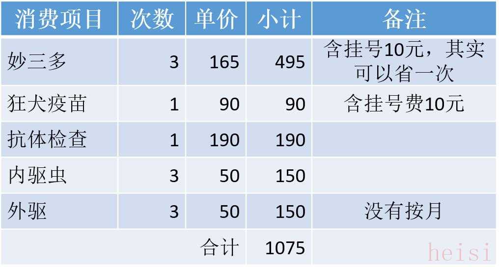 - "疫苗和驅(qū)蟲":第一次的費(fèi)用可能在200-500元。