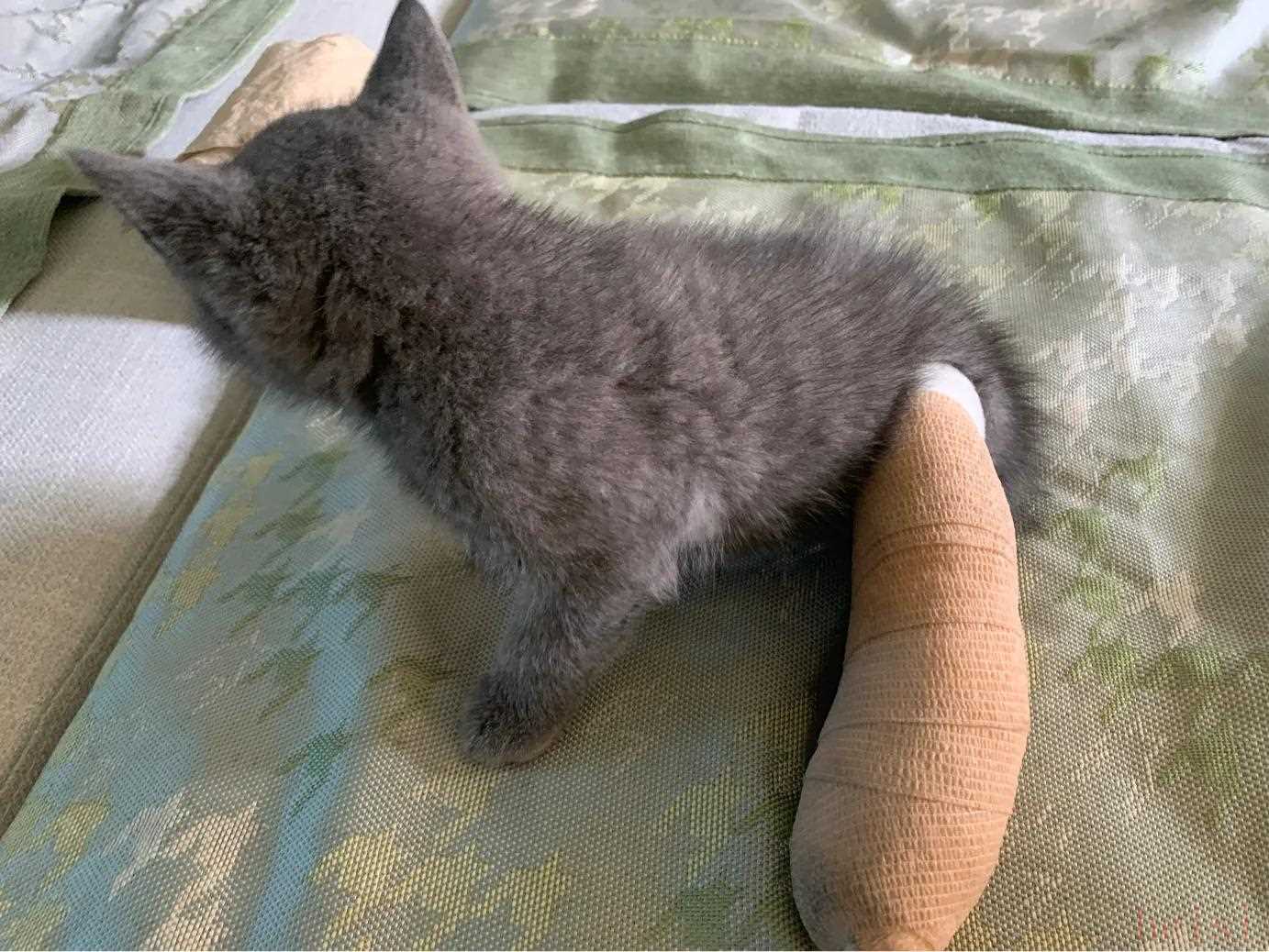 到了醫(yī)院,掛號(hào),拍片子,發(fā)現(xiàn)是左后腳的一個(gè)腳指頭骨折了。貓?zhí)×?,根本沒法做手術(shù),所以當(dāng)時(shí)就是給它打了外包扎來(lái)固定,醫(yī)囑一個(gè)星期不要拆??蓱z的波波亞,帶著一條比它身體還要長(zhǎng)的大香腸腿,又在車上一路到處溜達(dá)著回家了。后來(lái)覺得這條大香腸實(shí)在是太礙事了,不到一個(gè)星期我就給拆了。拆了之后慢慢的波波亞能著地了,后來(lái)完全長(zhǎng)好了,現(xiàn)在一點(diǎn)問題都沒有,還是很令人欣慰。