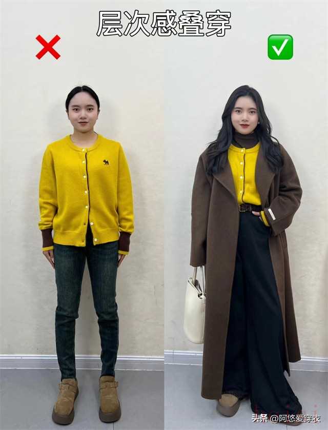 疊穿是近年來非常流行的穿搭方式,通過疊穿可以讓基礎(chǔ)款衣服穿出不同風(fēng)格。尤其是冬季穿厚實(shí)外套的時(shí)候,我們可以選擇一些薄款的打底衫或襯衫作為內(nèi)搭,通過層次的疊加,讓整體造型更加豐富和有層次感。