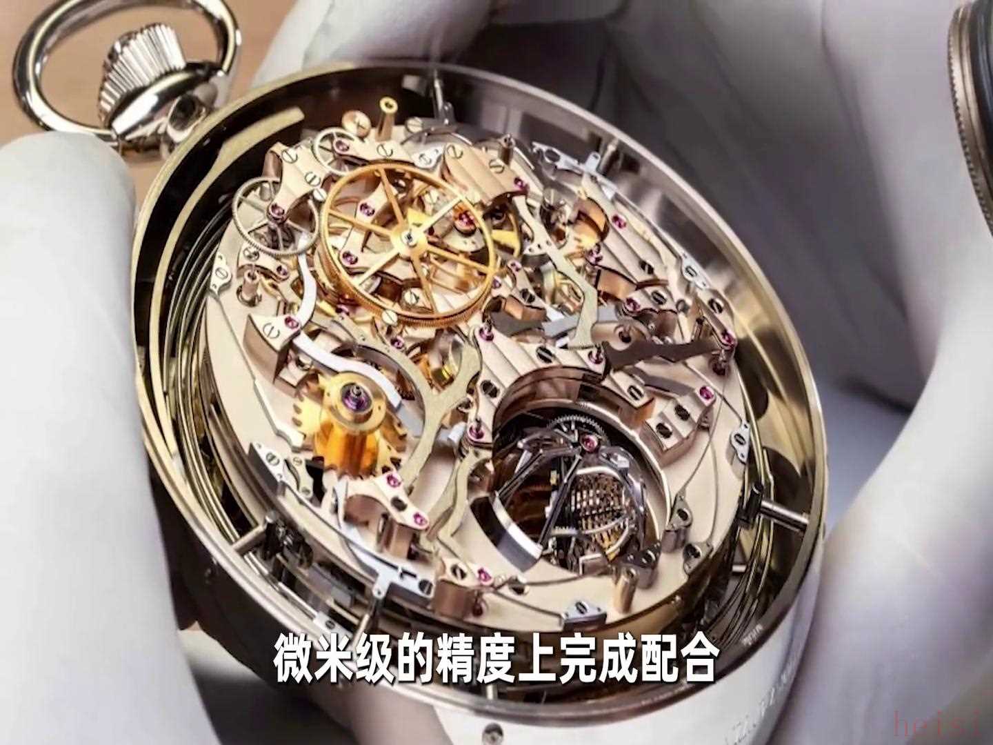 其中最令人驚嘆的便是這款懷表所搭載的機芯,江詩丹頓57260的機芯是一臺完全手工打造的機芯,它由許多零部件組成,總計超過2500個零件,而其中的每一塊都經(jīng)過了精細打磨和裝配。這些零件不僅要在微米級的精度上完成配合,而且要確保所有功能的流暢運行。