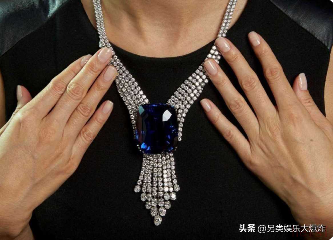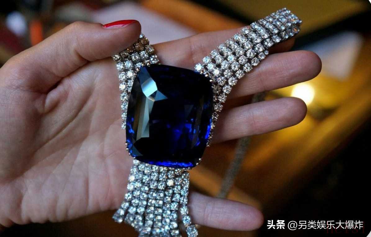 項(xiàng)鏈的中心位置是一顆重 392。5 克拉的宏偉矢車菊藍(lán)色藍(lán)寶石。2014 年,這條項(xiàng)鏈以 1730 萬(wàn)美元的價(jià)格售出,并創(chuàng)下了 ?最昂貴的 ? 藍(lán)寶石? 的記錄。