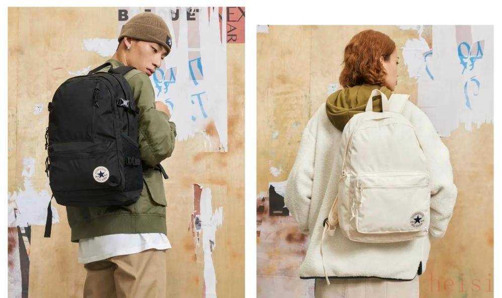 作為歷史長(zhǎng)河中聲名遠(yuǎn)揚(yáng)的運(yùn)動(dòng)鞋款式,它已然成為帆布鞋的典型代表。該品牌的雙肩包數(shù)量不算豐富,設(shè)計(jì)風(fēng)格有著顯著的運(yùn)動(dòng)休閑特質(zhì),顏色搭配并非僅局限于黑色,還涵蓋亮紅、藍(lán)色、紫色這類高飽和度色彩,上面搭配大寫的CONVERSE標(biāo)志或標(biāo)志性星標(biāo)圖案,具有較高的辨識(shí)度。