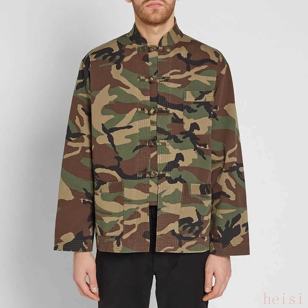 迷彩遇到唐裝,顯然,醒目的迷彩圖案所帶來的的軍事風(fēng)格會更加顯著,弱化了唐裝元素本身的風(fēng)格表現(xiàn)。