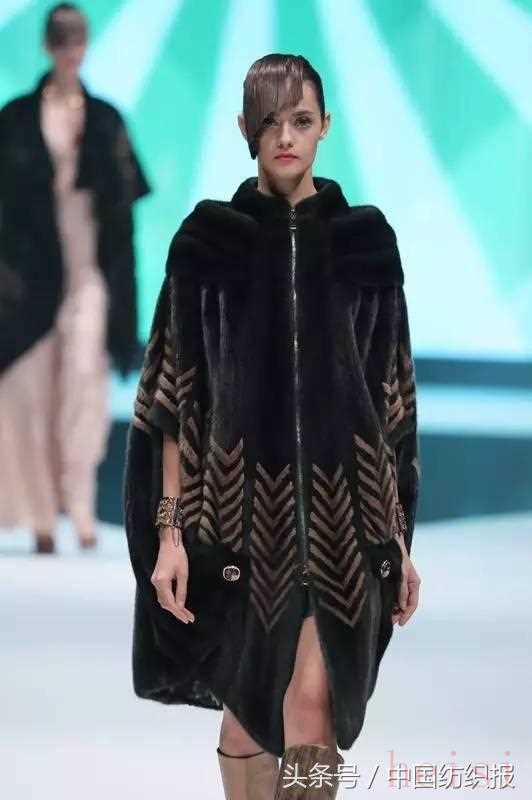 此次,富豪皮草的設(shè)計(jì)靈感來自大自然,材質(zhì)以染上森林綠色系的紫貂、長(zhǎng)毛和剪毛水貂剪裁為主,以抽刀鑲嵌的米色漸變鋸齒形圖案突顯主題。整個(gè)服飾的設(shè)計(jì)重點(diǎn)落在了衣服的下擺及袖口的剪裁上,燈籠袖、半袖;側(cè)開叉、不規(guī)則下擺等潮流元素被充分運(yùn)用在整個(gè)系列中。整體服飾系列以大疊襟長(zhǎng)袍和披肩、斜襟大褸和披肩褸為主,創(chuàng)新性的使用拉鏈裝飾袖口和肋線,并以皮革流蘇和閃石為系列增添特色。