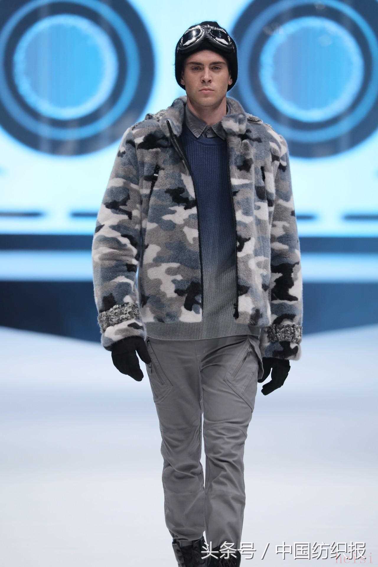 此次,海洋皮草以迷彩坦克為幕布背景,彰顯出了本系列的主題——年輕、運(yùn)動(dòng)。整個(gè)系列以白色、米色、灰色和黑色拼接成的迷彩圖案為主,用水貂和羔羊皮剪裁成洋溢現(xiàn)代氣息的運(yùn)動(dòng)型短外套、中褸和長(zhǎng)褸,并利用男女裝混合系列凸現(xiàn)出服飾的中性美。其中,男裝系列大膽的使用全身迷彩設(shè)計(jì),而女裝系列則以純色組成橫間或?qū)菞l紋款式。