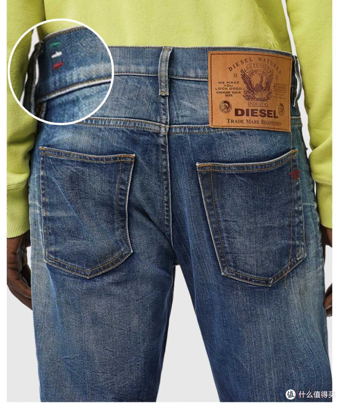 Diesel的牛仔褲產(chǎn)自很多國(guó)家,有意大利、突尼斯、摩洛哥、孟加拉等,但是產(chǎn)自意大利的褲子在腰部有與意大利國(guó)旗一樣顏色三條杠。