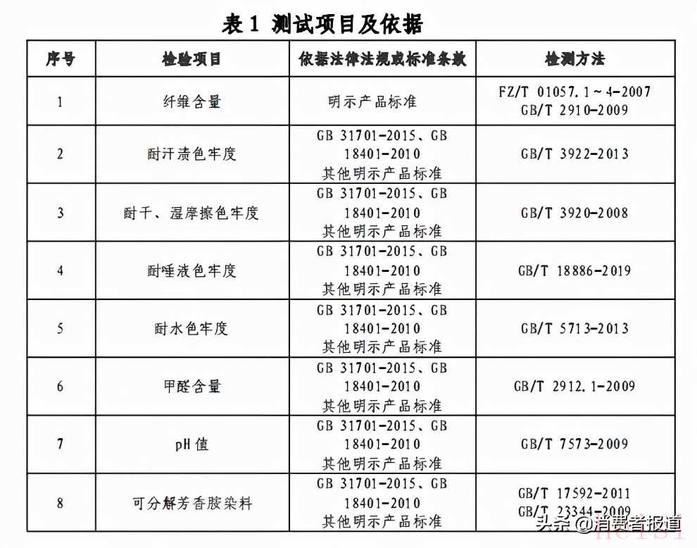 本次比較試驗(yàn)共測試8項(xiàng)指標(biāo),包括可分解芳香胺染料、甲醛、pH、耐唾液色牢度、耐水色牢度、耐汗?jié)n色牢度、纖維含量、耐干摩擦色牢度、耐濕摩擦色牢度等。根據(jù)測試結(jié)果,綜合各項(xiàng)指標(biāo)表現(xiàn),對樣品進(jìn)行評星。