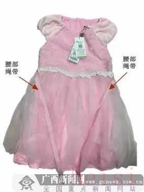 福建米拉服飾有限公司生產(chǎn)的一款短袖連衣裙,固著在腰部的繩帶,從固著點(diǎn)伸出測出的長度分別為530mm、528mm,而國標(biāo)中的繩帶要求7歲及以上兒童服裝,固著在腰部的繩帶,從固著點(diǎn)伸出的長度不應(yīng)超過360mm。