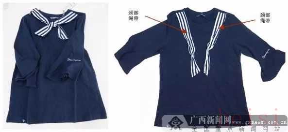 檢測結(jié)果顯示,27款兒童服裝在服用性能方面全部符合國家標(biāo)準(zhǔn)要求,在安全性能方面均沒有檢出甲醛含量、可分解致癌芳香胺染料,但在繩帶要求方面有2款兒童服裝不符合國家標(biāo)準(zhǔn)要求,分別是——
