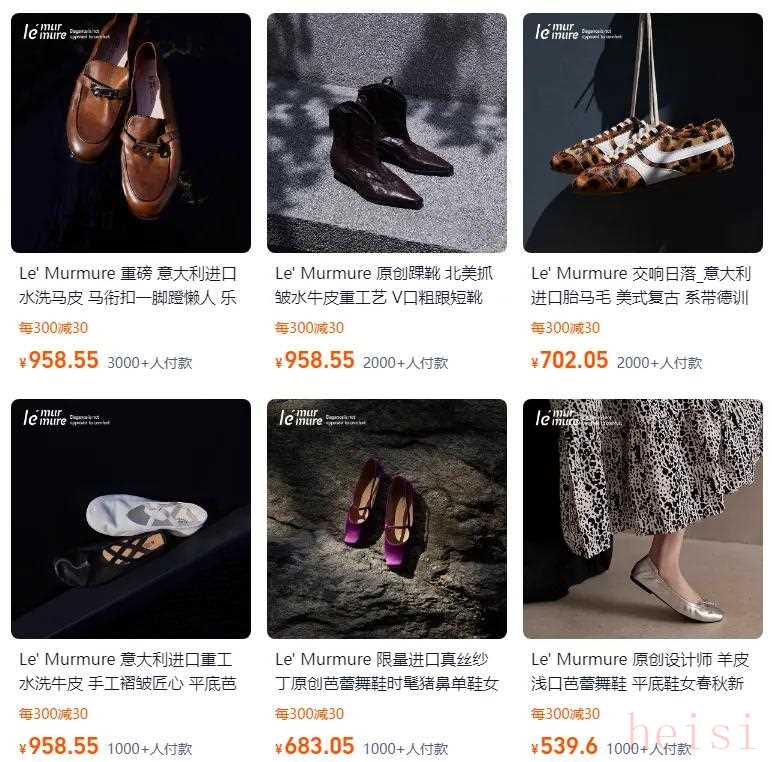 Le ' Murmure Le' Murmure成立于2016年浙江,該品牌主要經(jīng)營(yíng)女裝、女鞋和女包,其女鞋設(shè)計(jì)優(yōu)雅與舒適,從幾百元到上千元不等,滿足了不同消費(fèi)者的需求。