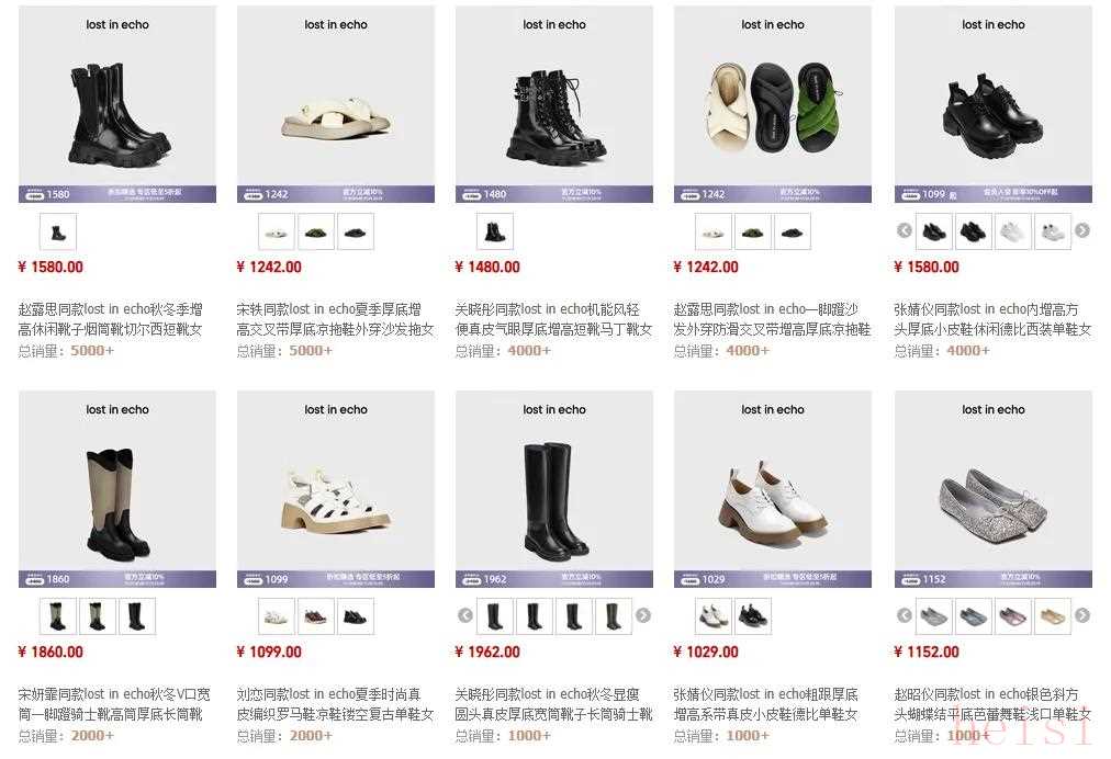 新銳品牌搶占細(xì)分市場(chǎng)在老牌鞋業(yè)市場(chǎng)下滑的背景下,批新興鞋履品牌憑借個(gè)性化定位迅速崛起。Lost in echo Lost in echo品牌創(chuàng)立于2018年,創(chuàng)立初期Lost in echo主要專注于鞋履品類的設(shè)計(jì)與制作。隨后,品牌逐漸擴(kuò)展至飾品、箱包等品類,形成了多元化的產(chǎn)品線。
