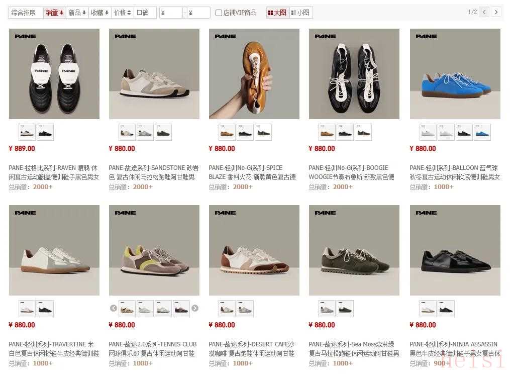 圖源:BREAD TREE 品牌官方 PANE PANE成立于2022年,PANE的風(fēng)格定位明確,主打復(fù)古運(yùn)動(dòng)風(fēng),雖然年輕但銷量很好。通過不斷嘗試和創(chuàng)新,PANE形成了自己的獨(dú)特的視覺風(fēng)格和產(chǎn)品線,定位獨(dú)特細(xì)化使其迅速在鞋履市場(chǎng)上嶄露頭角。