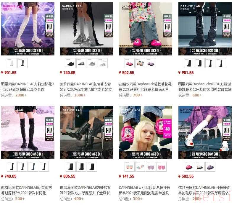 產(chǎn)品分為“放糖系列”、“泡泡糖系列”等,價(jià)格在400 - 1000不等,其爆款產(chǎn)品多為明星同款,例如趙露思、趙昭儀、宋雨琦、沈夢(mèng)辰等。