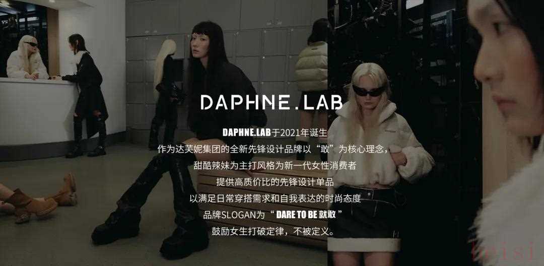 圖源:73Hours 官方 達(dá)芙妮 —— DAPHNE.LAB DAPHNE.LAB是達(dá)芙妮集團(tuán)旗下孵化的新品牌,于2021年成立,主要針對(duì)年輕時(shí)尚的新世代女性消費(fèi)者。品牌slogan為“Dare to be”,以“敢”為核心理念,鼓勵(lì)新世代女性消費(fèi)者勇敢打破定律,不被定義,勇敢追求自我、表達(dá)個(gè)性。