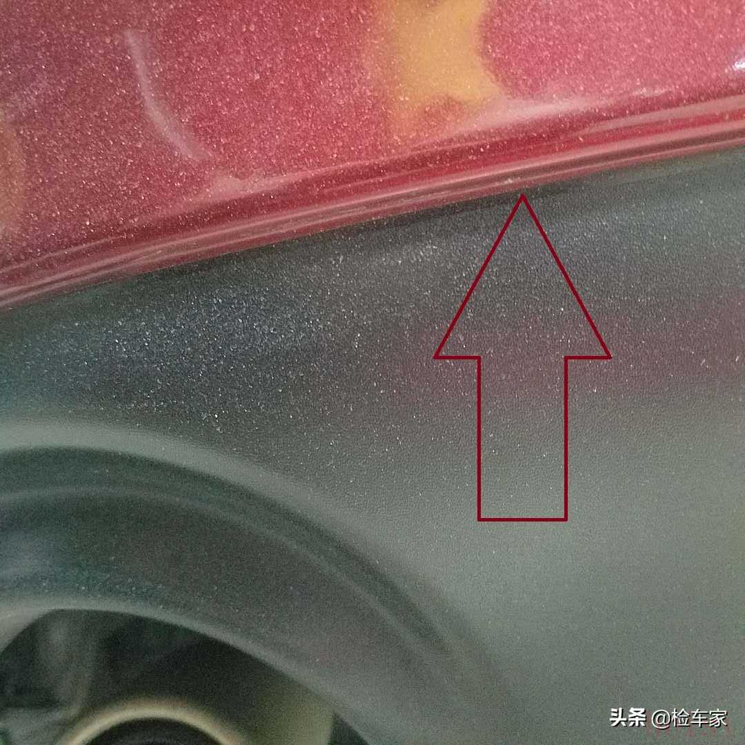 左后葉子板也有過(guò)鈑金的痕跡,二手車刮刮蹭蹭很正常,主要檢查的并不是有沒(méi)有后期噴過(guò)漆,而是檢查這個(gè)位置上有沒(méi)有切割的情況以及說(shuō)是不是發(fā)生過(guò)事故。