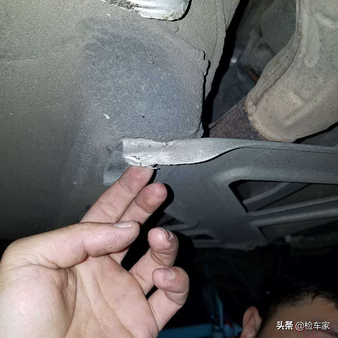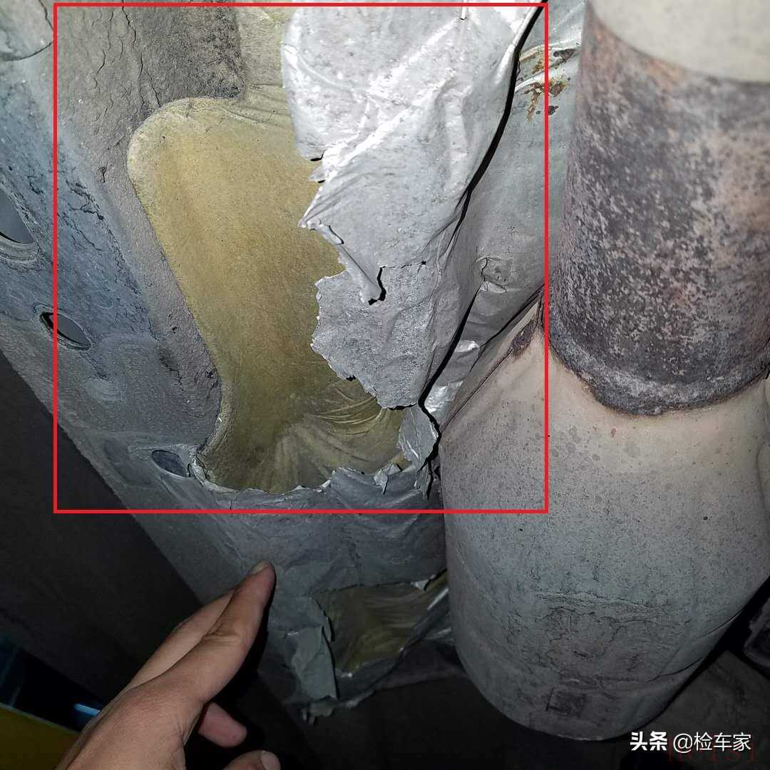 排氣管的隔熱板破損脫落,雖然這東西不易燃但是脫落下來(lái)有輕微異響。