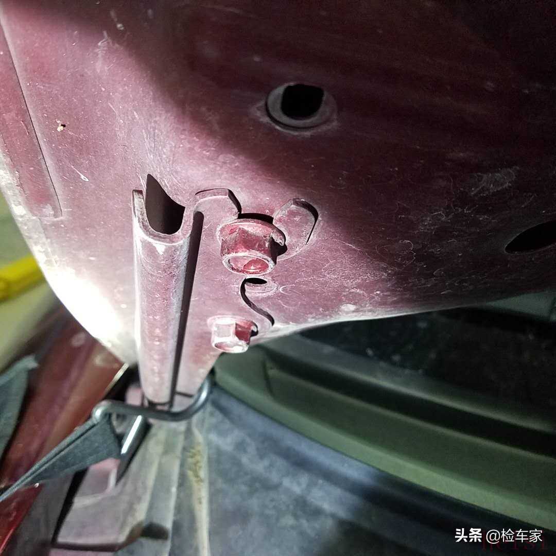 不過(guò)在旁邊發(fā)現(xiàn),右前葉子板螺絲有拆卸,結(jié)合葉子板鈑金屬于正常調(diào)整,當(dāng)然也不排除有更換嫌疑。