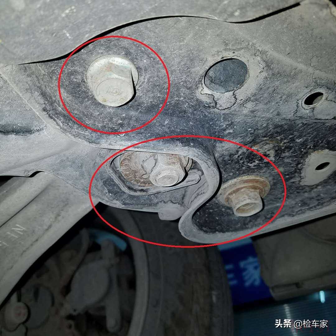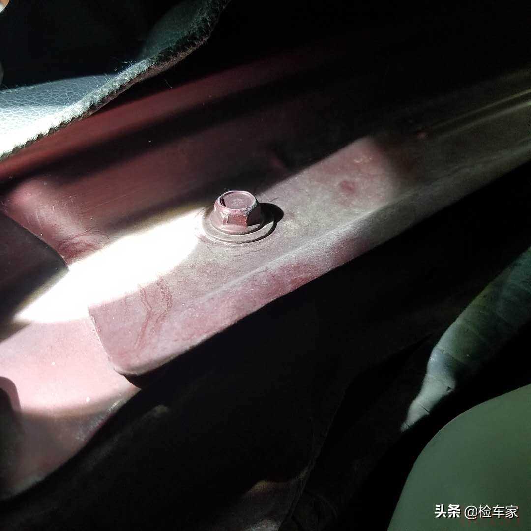 接著往下看,發(fā)現(xiàn)左前葉子板螺絲擰動(dòng),葉子板有過(guò)更換。
