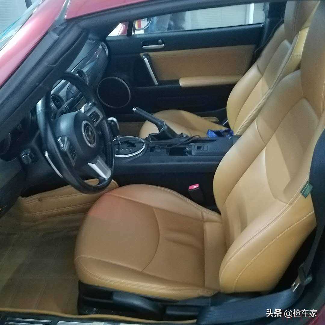 這張照片照的有點(diǎn)糊了,還請(qǐng)大家見(jiàn)諒。在這先簡(jiǎn)單的介紹一下車輛的基本信息,這臺(tái)車是一輛2009年8月出廠的馬自達(dá)MX-5,表顯里程:7.7萬(wàn)KM,賣(mài)家報(bào)價(jià):12W。怎么說(shuō)這個(gè)價(jià)格呢,10年車齡的一款車,保值率算是超高了吧。這個(gè)價(jià)格也就是現(xiàn)在二手車市場(chǎng)里的均價(jià),不貴也不便宜,只要車況好,這個(gè)價(jià)格還算可以接受。接下來(lái)還是帶大家看一下這臺(tái)車的車況吧。