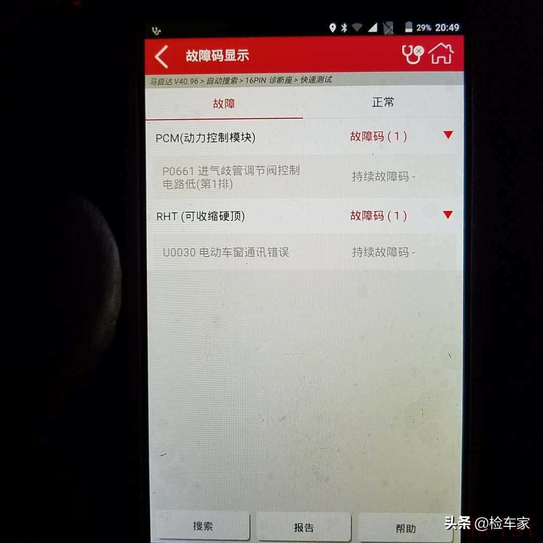 底盤(pán)結(jié)束了,最后再查看一下OBD,發(fā)現(xiàn)有兩條活動(dòng)故障碼,進(jìn)氣歧管調(diào)節(jié)閥報(bào)電路低,電子控制單元(ECU)在自檢時(shí)檢測(cè)到進(jìn)氣歧管調(diào)諧閥控制電路電壓低于校準(zhǔn)的最低值,則該故障碼會(huì)出現(xiàn)。發(fā)動(dòng)機(jī)抖動(dòng)可以順著這個(gè)故障碼來(lái)確定故障源。還有一個(gè)電動(dòng)車窗通訊錯(cuò)誤,但是頂棚在開(kāi)啟閉合的時(shí)候沒(méi)有任何問(wèn)題,可能和操作不當(dāng)也有一定關(guān)系。